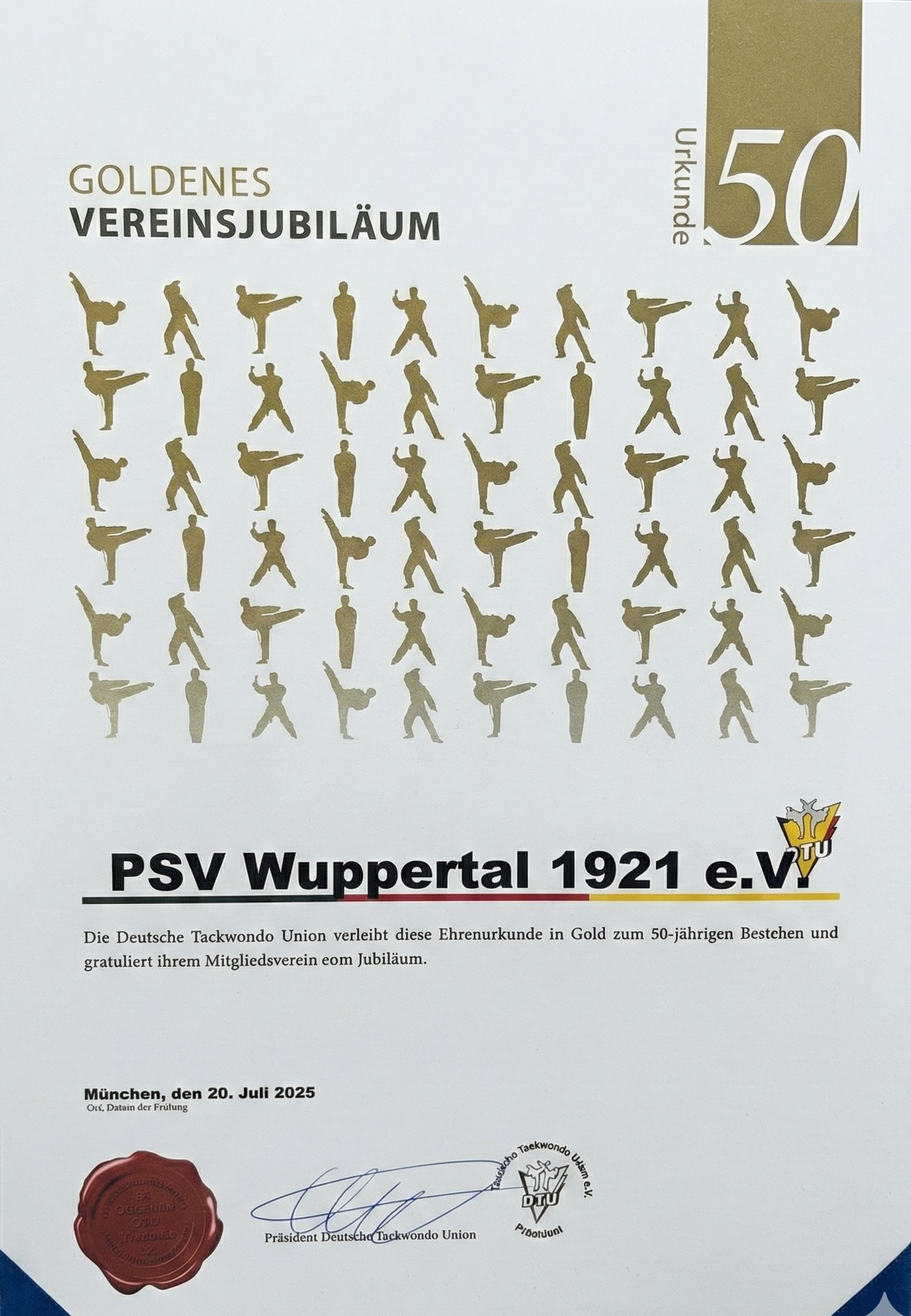 Der PSV Wuppertal 1921 e.V. wurde für sein 50-jähriges Bestehen mit der Ehrenurkunde in
